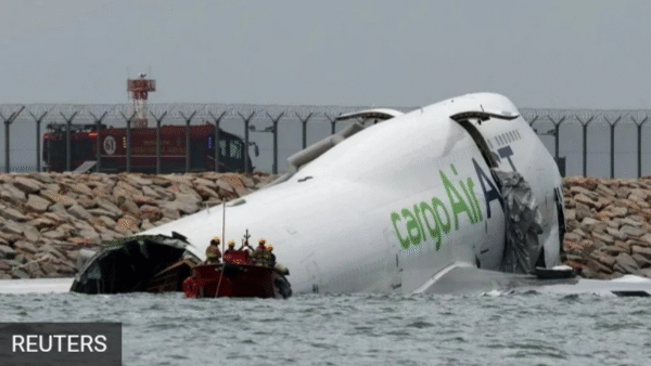 chanzo .BBC Ndege ya mizigo imeteleza kutoka kwenye njia ya kurukia ndege katika Uwanja wa Ndege wa Kimataifa wa Hong…